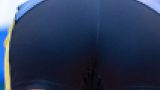 直立してるだけでもエグすぎるクイコミ。腰のパンストサポート部分まで見えてしまいます。