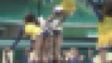 次は****※※です。少し見辛いですが、赤チアがやや控え目な動きながらしっかりとキックなどでパンチラを見せてくれました。黄チアもターンなどをすると辛うじて見えていましたが、スタンツを決めると、上に居た娘のスコートが捲れアンスコが丸見えになるシーンもありました。チアの動きは後半俄然良くなり、ハイキック連発もあり、見応えありました。チアの質は全体的に美人が多く良かったです』