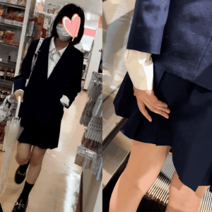 2人目のJKも顔は中の下クラスで少し濃い顔をしています。細身体型のJKです。スカート内は見せパンでしたがやや細めのパンツです。二度近づきました。