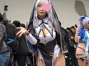 桃巨乳のコスプレイヤーさんの登場。
