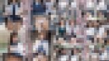 ホームでのしゃがみ込み 待ち時間に退屈したのか、ホームの柱に寄りかかりながら深くしゃがみ込むシーン。 真正面からのローアングルで、太ももの隙間や、スカートの中の無防備な光景(白地に青い花柄のショーツ)をハッキリと捉えています。周囲の雑踏音(環境音)も相まって、まるでその場で覗き見ているかのような臨場感を味わえます。