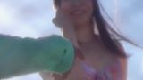 マイクロビキニで素股されながら、セラピストさんに健全店なので射精禁止と何度も諭されるが、我慢できずに誤爆してしまい、セラピストさんに精子がぶっかかる。