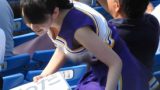 『最初は、※芝**です。やはり、コスチュームの露出度やアクションでは最高でした。対岸の**※※も悪くはありませんでしたが、スコートの短さや見えやすさでここに決めました。ステージ上では跳んだりはねたりで見えまくりのチアですが、席に帰っていく時のフリルのついたお尻も堪りませんでした』