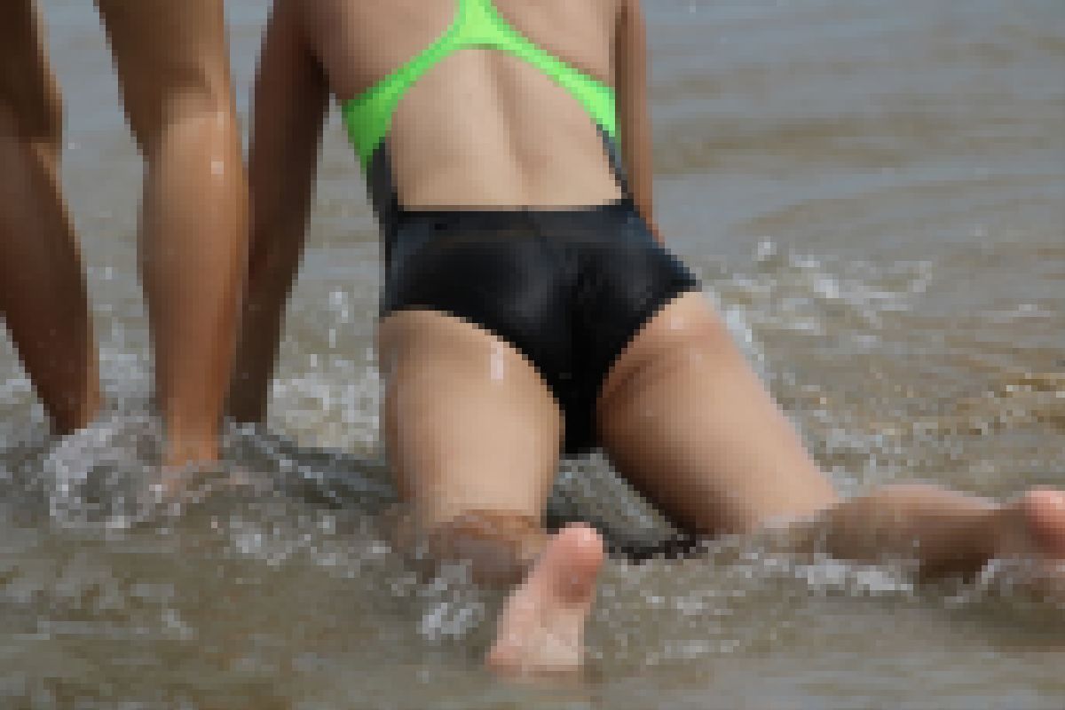 競泳タイプのスクール水着姿の女学生達がビーチで遊ぶ様子を収めた写真集です。