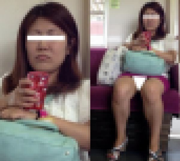 (電車対面)(顔出し)ミニタイトから…むっちり実っちゃった生足あんよをむき出しにしてくぱぁ~っとひらくおねいさんを観察してみまし