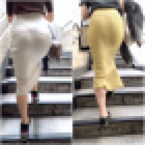 【ご自慢のお尻を突き出すイエロータイトスカートの着衣尻】