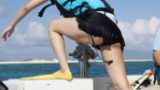 カメラ目線に食い込みに桃尻!!