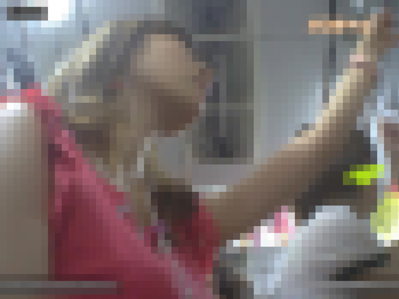 ・3人目:恐らく巨乳さんです。電車に乗り込む際、胸を触られないよう、肘でしっかりガ-ドしています。