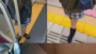 たまたま座った女の子のスカートが超ミニ!